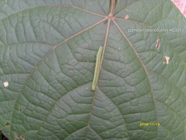 หนอนผีเสื้อ (Arthroschista hilararis) ขณะกำลังกินใบอ่อน