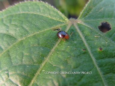 แมลงปีกแข็ง ขณะที่กำลังกัดกินใบอ่อน