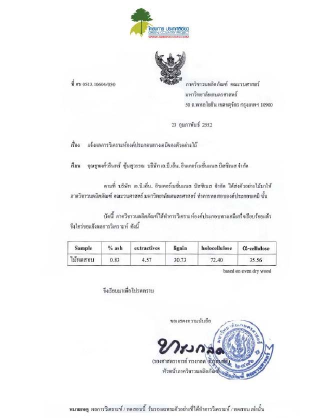 รายงานผลการวิเคราะห์คุณสมบัติของไม้พญาคชราช |